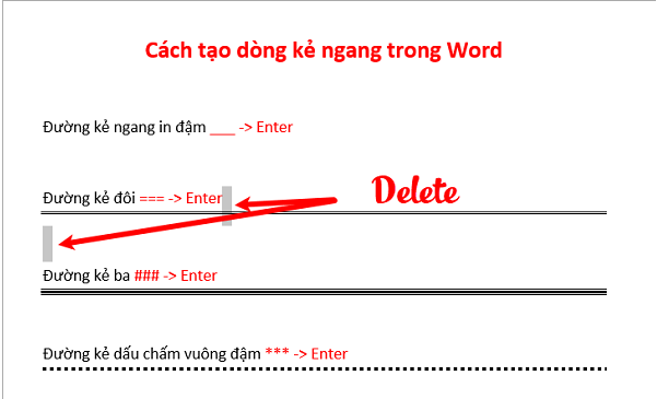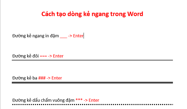 Đường kẻ ngang in đậm: các bạn nhấn liên tiếp 3 dấu gạch dưới ___ sau đó nhấn phím Enter.